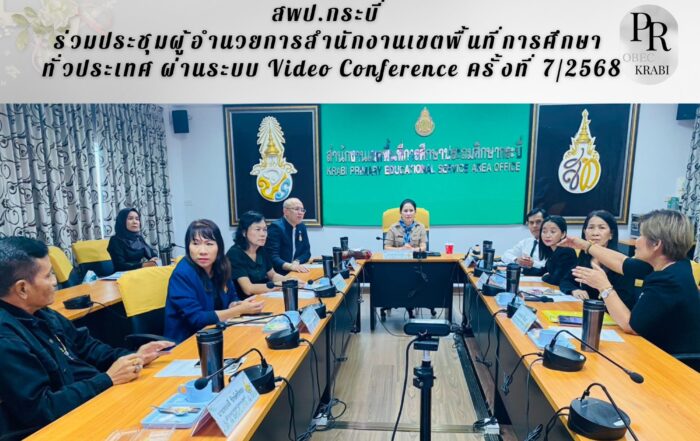 วันที่ 25 พฤศจิกายน 2568 เวลา 09.00 น. ที่ห้องประชุมปูดำ สพป.กระบี่ ดร.วรรณดี เกตแก้ว รองผู้อำนวยการสำนักงานเขตพื้นที่การศึกษาประถมศึกษากระบี่ พร้อมด้วยผู้อำนวยการกลุ่ม/หน่วย และบุคลากรที่เกี่ยวข้อง ได้รับมอบหมายจากผู้อำนวยการสำนักงานเขตพื้นที่การศึกษาประถมศึกษากระบี่ เข้าร่วมการประชุมผู้อำนวยการสำนักงานเขตพื้นที่การศึกษาทั่วประเทศ ผ่านระบบ Video Conference ครั้งที่ 7/2568 ซึ่งการประชุมครั้งนี้จัดโดยสำนักงานคณะกรรมการการศึกษาขั้นพื้นฐาน (สพฐ.) เพื่อแจ้งข้อราชการสำคัญสู่การปฏิบัติในระดับพื้นที่ ได้แก่ การดำเนินการเกี่ยวกับหลักสูตรการศึกษาระดับชั้นประถมศึกษาปีที่ 4–6 พ.ศ. 2568 การส่งเสริมการพัฒนาการเรียนรู้ของนักเรียนชั้นมัธยมศึกษาปีที่ 6 เพื่อเตรียมความพร้อมในการสอบวัดความถนัดทั่วไป (TGAT) และความถนัดทางวิชาการและวิชาชีพ (PAT) [...]