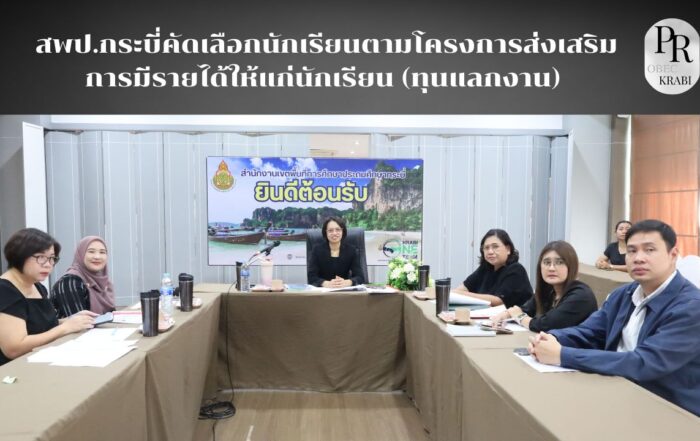 วันที่ 18 กุมภาพันธ์ 2569 ที่ห้องประชุมเหลืองกระบี่ สพป.กระบี่ นางสาวชัญญาภัค หินน้อย รองผู้อำนวยการสำนักงานเขตพื้นที่การศึกษาประถมศึกษากระบี่ พร้อมด้วย นางสาวจินตนาสุขย้อย ศึกษานิเทศก์ และคณะกรรมการที่ได้รับการแต่งตั้ง ร่วมดำเนินการคัดเลือกนักเรียนตามโครงการส่งเสริมการมีรายได้ให้แก่นักเรียน (ทุนแลกงาน) ซึ่งโครงการดังกล่าวเปิดโอกาสให้นักเรียนในโรงเรียนสังกัดสำนักงานเขตพื้นที่การศึกษาประถมศึกษากระบี่ ที่มีอายุตั้งแต่ 15 ปีขึ้นไป ได้มีโอกาสทำงานที่เหมาะสมในหน่วยงานราชการช่วงปิดภาคเรียนฤดูร้อน เพื่อสร้างรายได้ระหว่างปิดภาคเรียน แบ่งเบาภาระค่าใช้จ่ายของผู้ปกครอง พร้อมทั้งปลูกฝังให้นักเรียนเห็นคุณค่าของเงินและการทำงาน มีความภาคภูมิใจในการพึ่งพาตนเอง รู้จักใช้เวลาว่างให้เกิดประโยชน์ ฝึกวินัย ความรับผิดชอบ และการตรงต่อเวลา ตลอดจนเสริมสร้างความเข้มแข็งให้แก่นักเรียนและครอบครัว เตรียมความพร้อมสู่การศึกษาระดับที่สูงขึ้น และได้เรียนรู้ประสบการณ์จากโลกการทำงานจริง ทั้งนี้ สำนักงานคณะกรรมการการศึกษาขั้นพื้นฐาน ได้จัดสรรงบประมาณสนับสนุนทุนให้แก่นักเรียนที่ผ่านการคัดเลือก จำนวน [...]