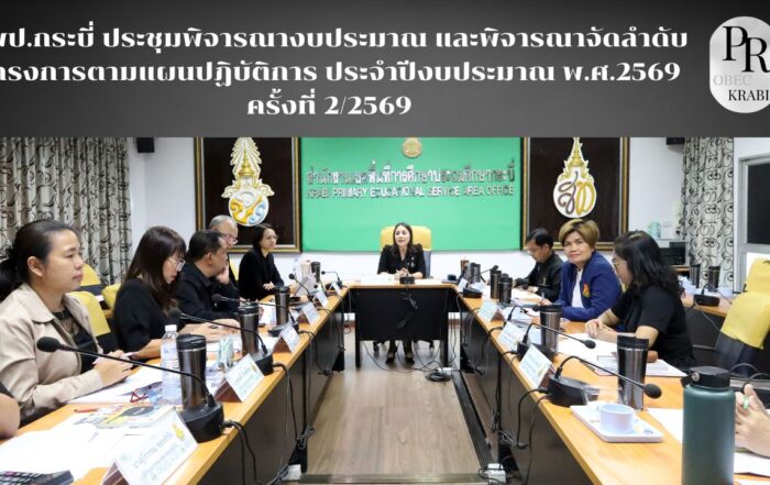 วันที่ 19 กุมภาพันธ์ 2569 เวลา 10.00 น. ที่ห้องประชุมปูดำ สพป.กระบี่ ดร.สิณีณาฏ อารีย์ รองผู้อำนวยการสำนักงานเขตพื้นที่การศึกษาประถมศึกษากระบี่ ได้รับมอบหมายจากผู้อำนวยการสำนักงานเขตพื้นที่การศึกษาประถมศึกษากระบี่ เป็นประธานการประชุมคณะกรรมการพิจารณางบประมาณ และพิจารณาจัดลำดับโครงการตามแผนปฏิบัติการ ประจำปีงบประมาณ พ.ศ.2569 ครั้งที่ 2/2569 เพื่อพิจารณาจัดสรรงบประมาณงบพัฒนาคุณภาพการศึกษา ประจำปีงบประมาณ พ.ศ. 2569 ครั้งที่ 2 จำนวน 150,000 บาท โดยมีทีมบริหาร สพป.กระบี่ เข้าร่วมประชุมเพื่อร่วมกันพิจารณาการจัดสรรงบประมาณให้เป็นไปอย่างมีประสิทธิภาพ โปร่งใส และสอดคล้องกับแผนปฏิบัติการประจำปีของสำนักงานฯ ทั้งนี้ การพิจารณางบประมาณในครั้งนี้มุ่งเน้นให้การใช้จ่ายงบประมาณเป็นไปตามกรอบนโยบายของกระทรวงศึกษาธิการ [...]
