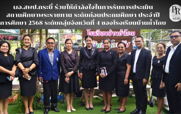 วันที่ 19 กุมภาพันธ์ 2569 ที่โรงเรียนบ้านถ้ำโกบ อำเภอเขาพนม จังหวัดกระบี่ ดร.จอมขวัญ นครไธสง ผู้อำนวยการ สำนักงานเขตพื้นที่การศึกษาประถมศึกษากระบี่ ลงพื้นที่ร่วมให้กำลังใจคณะครูและนักเรียน ในการรับการประเมินสถานศึกษาพระราชทาน ระดับก่อนประถมศึกษา ประจำปีการศึกษา 2568 ระดับกลุ่มจังหวัดที่ 4 ซึ่งการประเมินครั้งนี้เป็นการพิจารณาคุณภาพการจัดการศึกษาระดับก่อนประถมศึกษา โดยมีสถานศึกษาในกลุ่มจังหวัดที่ 4 ได้แก่ กระบี่ พังงา ภูเก็ต ระนอง และตรัง เข้าร่วมกระบวนการประเมิน เพื่อคัดเลือกสถานศึกษาที่มีการบริหารจัดการและการจัดประสบการณ์เรียนรู้ที่มีคุณภาพตามเกณฑ์ประเมินฯ ในการนี้ ผู้อำนวยการสำนักงานเขตพื้นที่การศึกษาประถมศึกษากระบี่ ได้ร่วมให้กำลังใจบุคลากรทางการศึกษาและนักเรียน พร้อมร่วมให้การต้อนรับคณะกรรมการประเมินฯ ที่เดินทางมาประเมินผลการดำเนินงานของสถานศึกษา ซึ่งนับเป็นอีกหนึ่งโอกาสสำคัญในการสะท้อนคุณภาพการจัดการศึกษา [...]