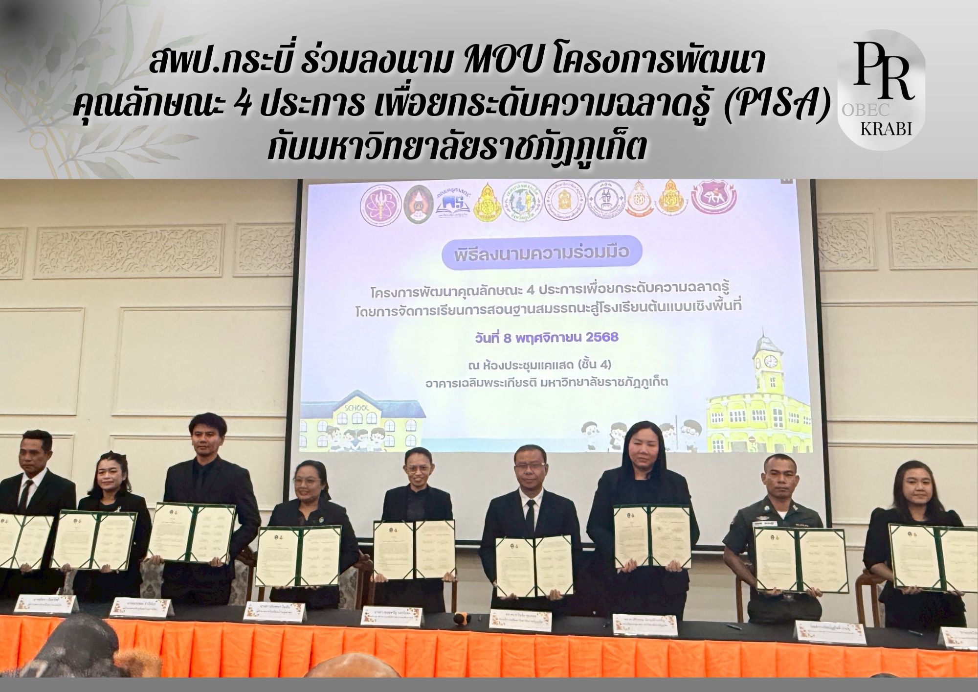 สพป.กระบี่ ร่วมลงนาม MOU โครงการพัฒนาคุณลักษณะ 4 ประการ เพื่อยกระดับความฉลาดรู้ (PISA) กับมหาวิทยาลัยราชภัฏภูเก็ต