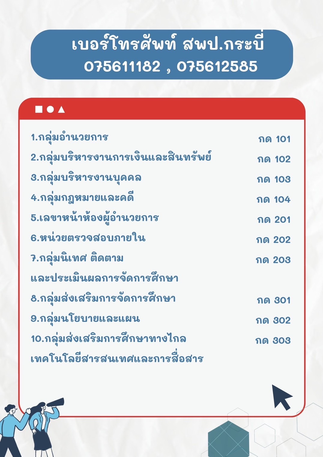 ช่องทางอิเล็กทรอนิกส์สำหรับการติดต่อสำนักงานเขตพื้นที่การศึกษาประถมศึกษากระบี่ พ.ศ. 2568